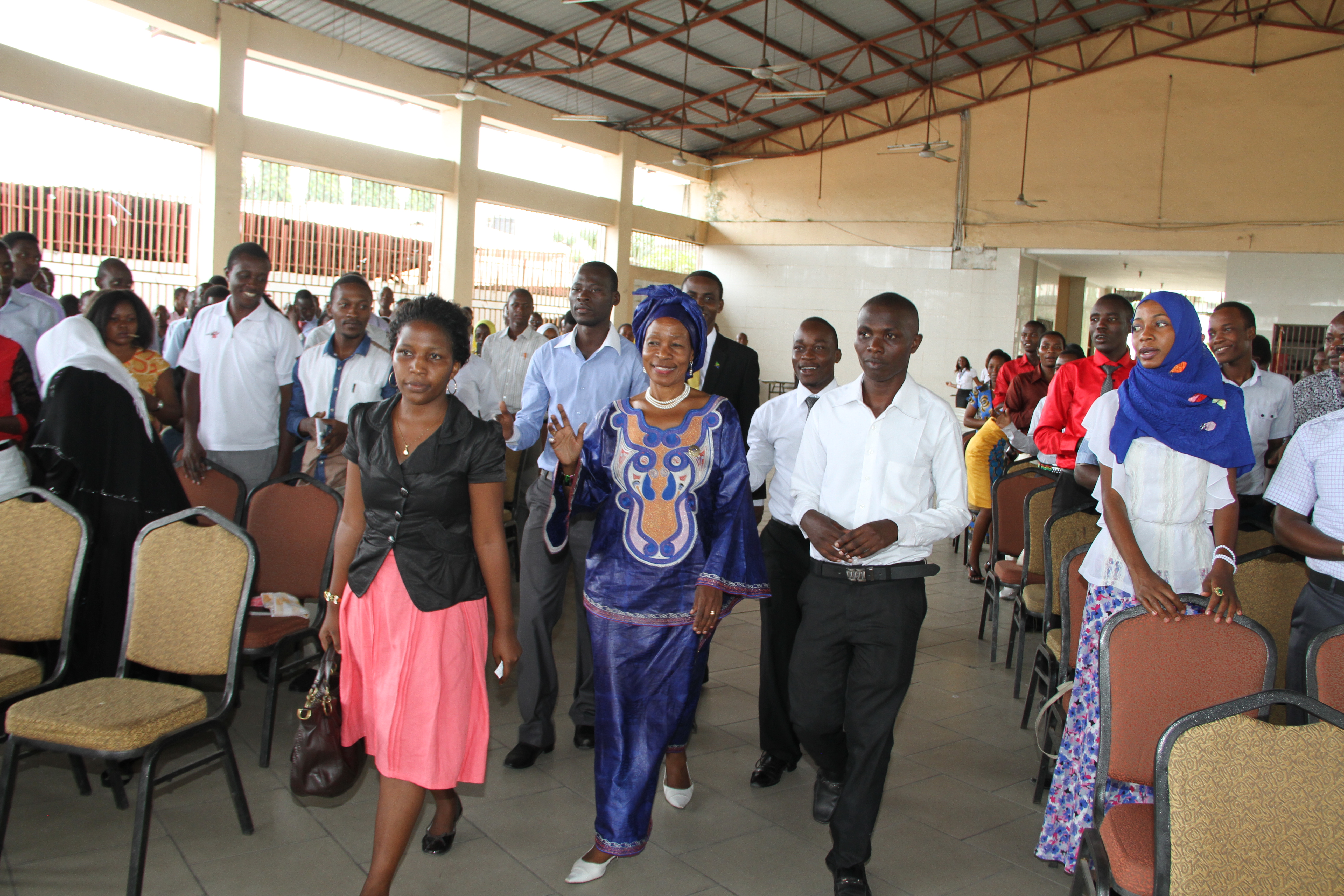Hon. Prof Anna Tibaijuka(MP) waving hand as she is entering the seminar Hall where she met with university students at Land Mark Hotel in Dar es salaam Share on: