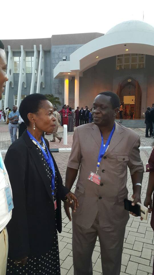 Prof AnnaTibaijuka,mbunge wa Muleba Kusini akisalimiana na Goodluck Ole Medeye(Mb) katika viwanja vya Bunge,Dodoma