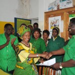 Hon. Prof. Anna Tibaijuka, Minister for Lands, who is also Member of Parliament for Muleba South is contensting for the Muleba District seat in the National Executive Committee of Tanzania’s ruling Party, CCM. In these photos she is seen receiving the election forms from District Party Secretary Wilbroad Msafiri at his office on the 23rd August, 2012 Muleba. Hon. Tibaijukwa was accompany by a crowd of supporters notably the women from Biirabo Ward who had collected money to support her election campaign in 2010. She emerged as the unopposed winner. Her message for CCM is that “Strengthening the Party will require an all hands on deck approach, because of the changing political environment. I cannot sit aside and watch, but must do my best to serve the interest of my party