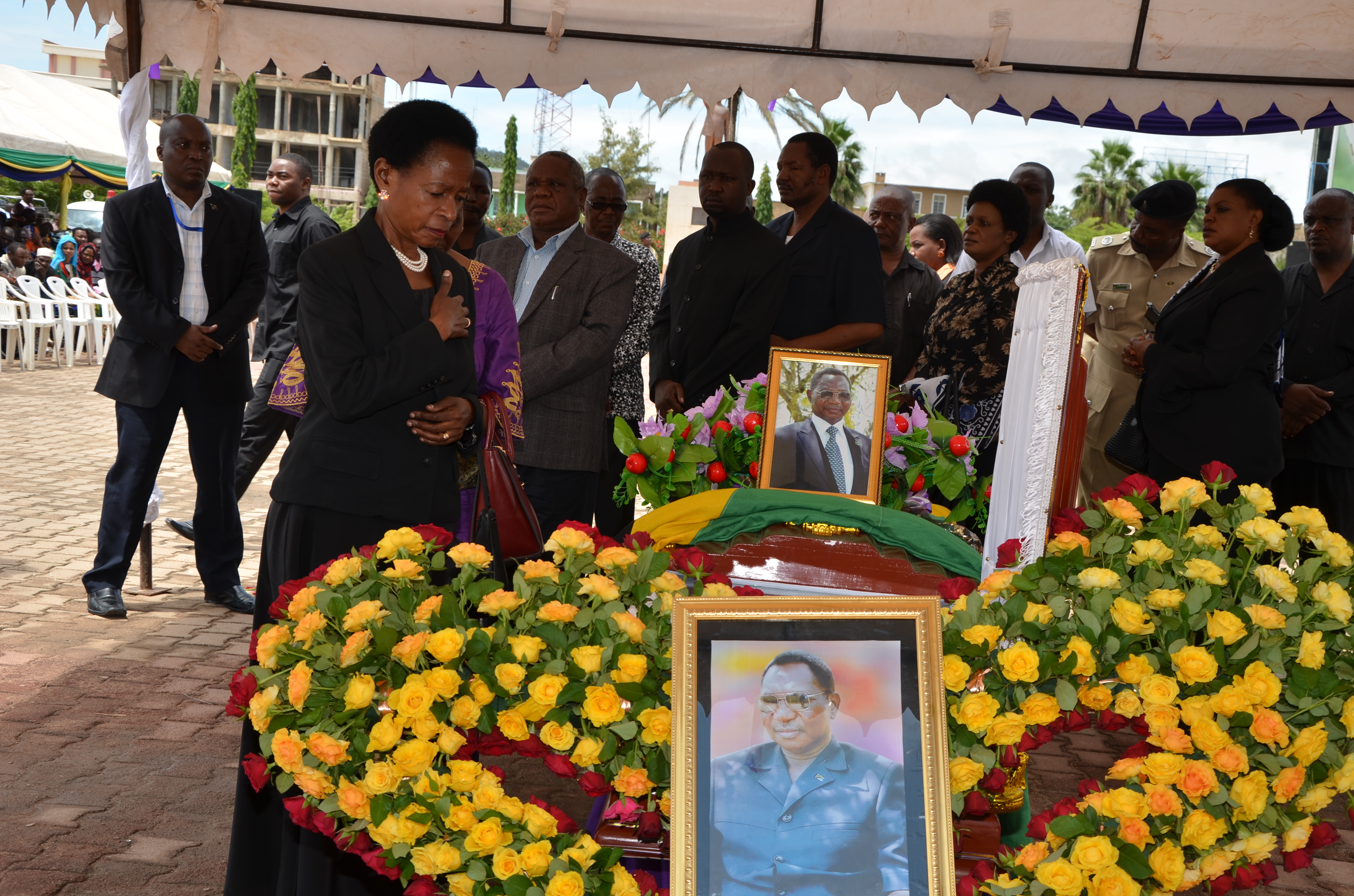 Minister Anna Tibaijuka pays her last respects to the late Mara Regional Commissioner, John Tupa at Nyerere Square in Dodoma.